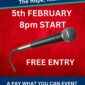 Upstairs in our private room. No entry fee but optional pay what you feel the acts...