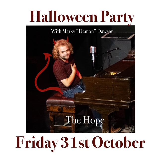 Friday 31/10 Halloween Party with Marky Dawson Pippa2025-10-24T17:05:19+00:00 Live Music Marky “Demon” Dawson, the piano man will be playing some fearsome covers from 9pm.